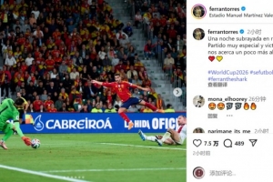 此役是費蘭-托雷斯為西班牙隊出戰的第50場比賽,他在社交媒體上曬出比賽照片,配文:“值得銘記的夜晚,為西班牙出戰50場,這是一場非常特別的比賽,勝利讓我們距離世界杯更近一步。”