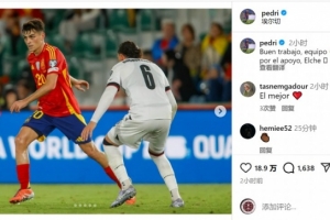 佩德里社媒曬出比賽照片,配文:“干得漂亮,隊友們!感謝埃爾切球迷的支持(此役在埃爾切進行)。”