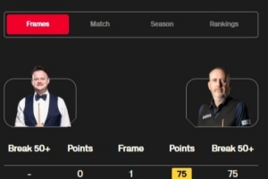 因時(shí)間原因,本階段僅戰(zhàn)八局,威廉姆斯以7-1的比分暫時(shí)領(lǐng)先墨菲。