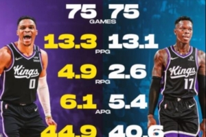 威少上賽季出戰75場,場均13.3分4.9板6.1助攻,三項命中率44.9/32.3/66.1%