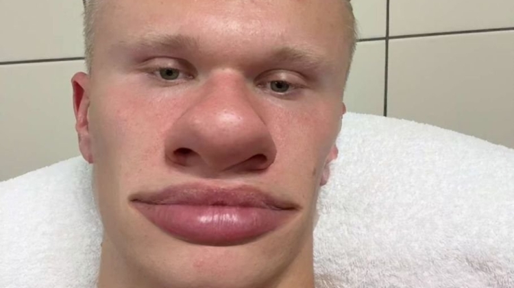 賽后,哈蘭德更新社媒曬出帶大鼻子+香腸嘴特效的搞怪自拍,配文“有點累”。
