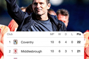 體育資訊10月19日訊 在本輪英冠聯賽,蘭帕德執教的考文垂以2-0擊敗布萊克本。