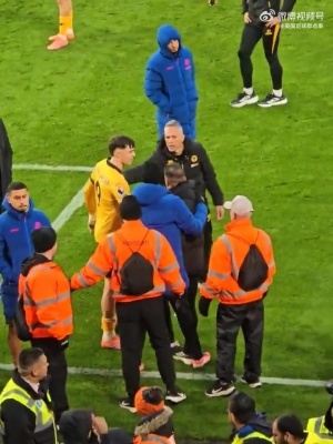 狼隊2比3伯恩利賽后,狼隊主教練佩雷拉試圖與憤怒的球迷爭吵,隨后被人及時拉開.....??