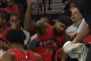 “很多人都認為他應該站起來道歉。我理解他的沮喪,他在比賽中摔倒得很尷尬,而且那是一場艱難的比賽,他們有很多失誤,最終沒能贏得比賽。但我不認為這是正確的回應方式。有人說他像三歲小孩一樣,確實如此,這種事情經常發生在有小孩的家庭里。但我認為這不是合適的反應。他應該對此道歉,但他沒有這樣做,沒有任何反應。我不知道他當時是怎么想的,但作為一個普通人,我認為他應該有所表示。他不應該坐在那里看著大家清理,尤其是當水濺到隊友臉上時。他應該幫助清理,而不是讓別人的生活變得更加困難。也許這是因為他是超級富豪,覺得這些人理應為他服務。但我們不應該輕易下結論。他看起來非常沮喪,可能只是心情不好而已。”Donnie Freeman表示。