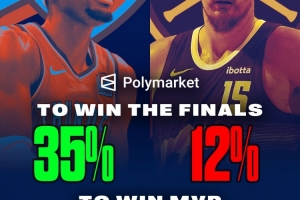 但在奪冠概率上,約基奇所在的掘金(12%)遠低于雷霆(35%)。