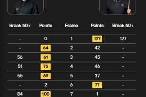 諾鵬·桑卡姆打出單桿127分,龐俊旭打出56、51、55、84分共四桿50+,最終龐俊旭以6-2的比分戰勝諾鵬·???,晉級英錦賽正賽。