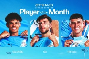 體育資訊12月1日訊 曼城官方公布11月隊內最佳候選,奧賴利、尼科·岡薩雷斯、福登三人入圍。