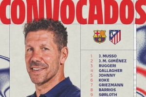 體育資訊12月2日訊 北京時間明天凌晨,馬競將在西甲第19輪比賽中客場對陣巴薩,馬競公布了此役的球員名單。略倫特、勒諾爾芒仍然缺席。