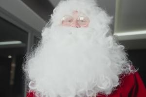 哈蘭德在化妝師的幫助下,粘上濃密的白眉毛和白胡子,雙頰抹上北極最著名居民特有的玫瑰紅胭脂。隨后他在外套里塞進一個大枕頭。