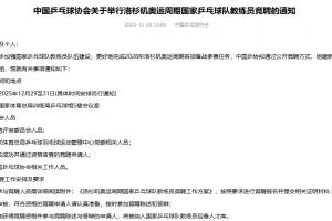 體育資訊12月20日訊 中國乒協官方今日發布通知,為備戰2028年洛杉磯奧運周期,擬通過公開競聘方式組建新一屆國乒教練組。