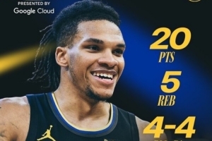 理查德本場比賽出戰20分鐘,7中6,三分4中4,罰球4中4超高效貢獻20分5板(2前板)。