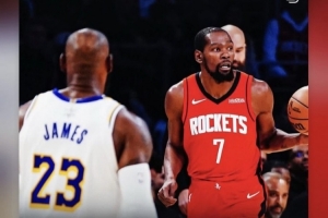 火箭前鋒杜蘭特在賽后采訪中談到與詹姆斯的交鋒時說道:“我對于我們之間的每次交手都心懷感恩。”