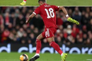 體育資訊01月13日訊 足總杯第3輪,利物浦4-1擊敗巴恩斯利。比賽中出現了有趣的一幕,利物浦邊鋒加克波一只腳沒穿鞋參與反擊。