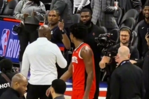 賽后,阿門·湯普森和奧薩爾·湯普森兩兄弟聊天,聊完還相互指著對方。