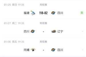 本場(chǎng)失利后,四川本賽季已經(jīng)遭遇19連敗,還未取得一場(chǎng)勝利,接下來(lái)他們將先后對(duì)陣遼寧、同曦、新疆和山西。