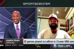 體育資訊2月11日訊 今日,前NBA球員諾阿做客ESPN電視節(jié)目《Sports Center》,談到湖人前鋒詹姆斯。