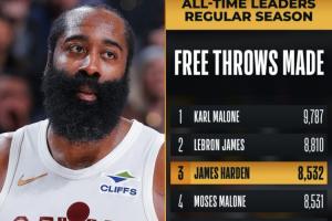 本場過后,哈登生涯總罰球命中數(shù)來到8535個,超越摩西·馬龍(8531個)升至歷史第3,排在第2的是詹姆斯(8810個)。