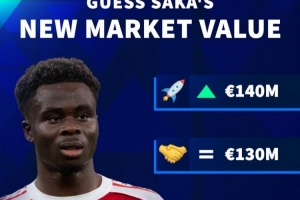 德轉預熱薩卡最新身價(目前1.3億歐元):