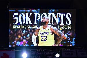 2025年3月5日,湖人主場136-115大勝鵜鶘豪取七連勝。首節(jié)比賽,詹姆斯在外線首次出手就命中三分,職業(yè)生涯總得分突破50000分(常規(guī)賽41838分+季后賽8162分)里程碑,他也是NBA至今唯一達成此成就的球員。