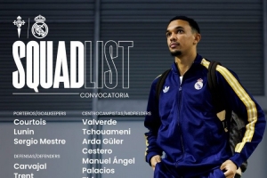 體育資訊3月6日訊 北京時間明天凌晨,皇馬將在西甲第27輪比賽中客場對陣塞爾塔,皇馬公布了此役的球員名單。姆巴佩、貝林厄姆、阿拉巴、米利唐、羅德里戈、塞巴略斯因傷缺席,赫伊森、馬斯坦托諾、卡雷拉斯停賽缺席,阿森西奧回歸。