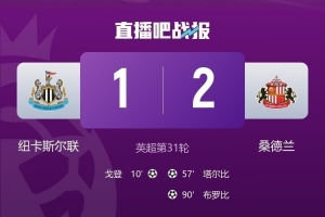 體育資訊3月22日訊 英超第31輪“泰恩-威爾德比”,紐卡斯爾主場1-2被桑德蘭逆轉。戈登首開記錄,塔爾比扳平,布羅比上演絕殺。