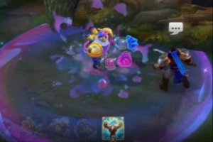 回城時(shí),布里茨檢視泡泡機(jī)出現(xiàn)故障,慘遭橡膠飛爪黏住頭部,一通掙扎后眼冒金星倒地回城。布里茨使用Q技能后伸出橡膠飛爪抓取敵人,釋放大招時(shí)過(guò)載體內(nèi)泡泡倉(cāng),吹出巨大的紫色氣泡將周圍敵人全部籠罩。該內(nèi)容來(lái)自于測(cè)試服,具體以正式服上線為準(zhǔn)。