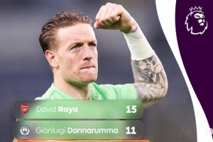 據英超官方統計,本賽季至今,這名埃弗頓門將在聯賽中共11次取得零封,次數與曼城門將多納魯馬相同并列第二,阿森納門將拉亞以15次零封居首。