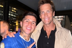 NFL傳奇巨星湯姆-布雷迪來到現場觀看比賽,恩佐社媒曬出與布雷迪的合照,并配上了山羊(GOAT)的表情符號。
