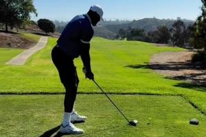 詹姆斯曬出他前往練習高爾夫的片段,并艾特兩位友人寫道:“@whojungwoo @ernieramos 草地今天對我們很好。至少大部分時間內是這樣的???????????♂?”