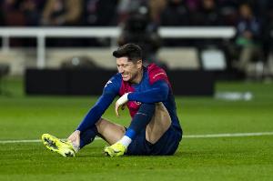 巴薩俱樂(lè)部在官方公告中謹(jǐn)慎表示,這位波蘭前鋒將缺席甘伯杯比賽,且恢復(fù)情況將決定其后續(xù)比賽能否上場(chǎng)。然而據(jù)《阿斯報(bào)》獲悉,目前預(yù)估球員將傷停數(shù)周,不排除要到九月中旬國(guó)際比賽日后才能復(fù)出。