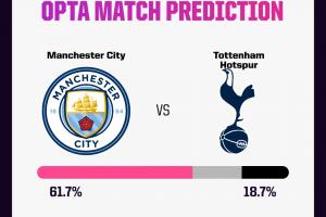 體育資訊08月23日訊 今晚19:30,英超第2輪焦點戰(zhàn)曼城vs熱刺。曼城首輪4-0戰(zhàn)勝狼隊,而熱刺3-0戰(zhàn)勝伯恩利,此役瓜迪奧拉確認(rèn)羅德里、福登可以出戰(zhàn),本輪誰能爭得兩連勝?Opta超級計算機預(yù)測,曼城的勝率為61.7%。