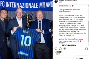 因凡蒂諾寫道:我這次的經(jīng)歷可以用“回家”來(lái)形容。非常榮幸能訪問國(guó)米總部,并與俱樂部CEO馬洛塔、副主席兼國(guó)際足壇傳奇薩內(nèi)蒂、首席營(yíng)收官喬治-里奇以及首席參謀馬克西米里亞諾-卡塔內(nèi)塞會(huì)面。我們討論了許多重要議題,包括球員福祉、國(guó)際比賽日賽程以及足球的未來(lái)等等。參觀俱樂部榮譽(yù)室是一次深受觸動(dòng)的經(jīng)歷!