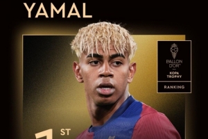 體育資訊9月23日訊 2025年金球獎頒獎典禮,亞馬爾獲科帕獎,連續兩年獲此榮譽。