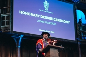 本周一,瓜迪奧拉出席了頒授儀式并發(fā)表致辭。2016年,瓜迪奧拉出任曼城主帥,在他的率領(lǐng)下,球隊(duì)實(shí)現(xiàn)了英超4連冠的壯舉也拿到了歐冠冠軍。