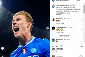 霍伊倫社媒曬出慶祝進球的照片,并發文調侃:“霍伊倫在歐冠比賽中梅開二度,還都是德布勞內的助攻——這完全不在我2025年的劇本之中?!?/p>