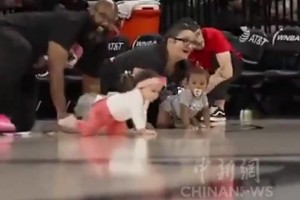 威姆斯又到現(xiàn)場看廣東隊比賽了 這次坐在廣東隊家屬席??